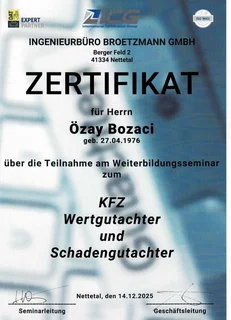 Ich bin Kfz-Technikermeister, Sachverständiger für Schäden und Bewertungen, Sachverständiger für Autoreparaturen